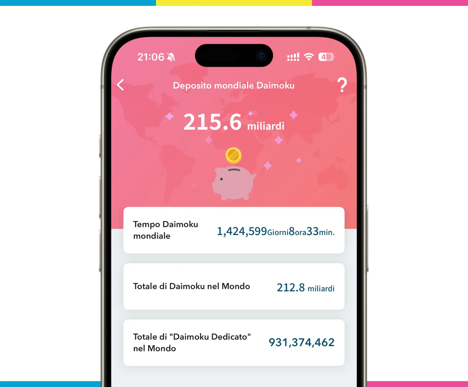 Il “Deposito mondiale di Daimoku” è calcolato come la somma di “Conteggio mondiale di Daimoku” e “Conteggio mondiale di pregati” x 3.